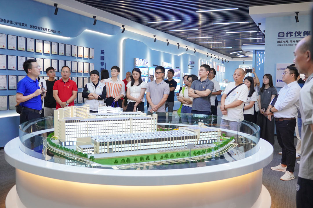 隨后,在楊彥等的陪同下,王奇一行來到民興科技展廳參觀,詳細(xì)了解企業(yè)發(fā)展歷程、產(chǎn)業(yè)布局、科技創(chuàng)新、企業(yè)文化、社會(huì)責(zé)任等。每到一處,王奇等都認(rèn)真聆聽講解、頻頻拍照記錄,在觀摩中領(lǐng)略企業(yè)獨(dú)特風(fēng)采,在深入交流中啟發(fā)創(chuàng)新思路。特別是移步至發(fā)明專利墻展示區(qū)、運(yùn)營(yíng)大數(shù)據(jù)展示區(qū)時(shí),大家紛紛對(duì)民興在科技創(chuàng)新和智能化管理等方面所取得的成就點(diǎn)贊。