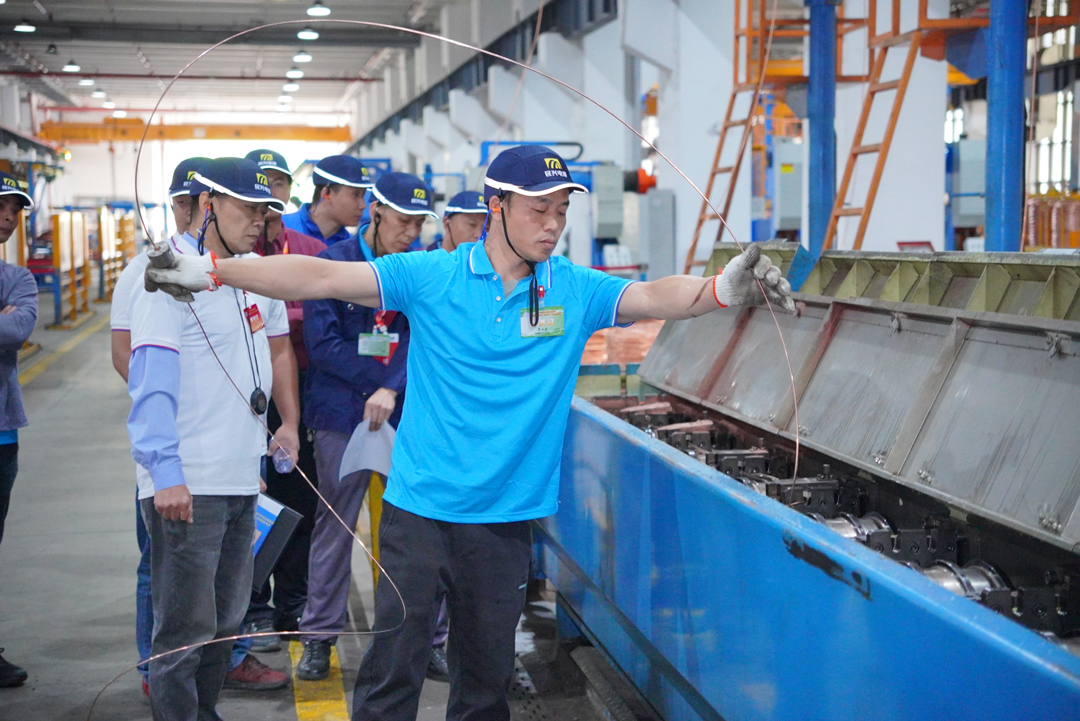 本次競賽采用個人賽形式,分為初賽理論考核與決賽實操比拼兩大環(huán)節(jié)。其中,初賽以電線電纜制造工(拉制工)國家職業(yè)技能三級/高級工為競賽標準,融入行業(yè)前沿技術(shù)與創(chuàng)新知識,全面考察選手對技術(shù)基礎(chǔ)知識、標準產(chǎn)品性能指標、測量方法等的掌握情況。決賽對選手的技能要求全面而精準,核心在于通過塑性加工技術(shù)實現(xiàn)金屬導體線材的高效、穩(wěn)定生產(chǎn),確保線材的精度與一致性。