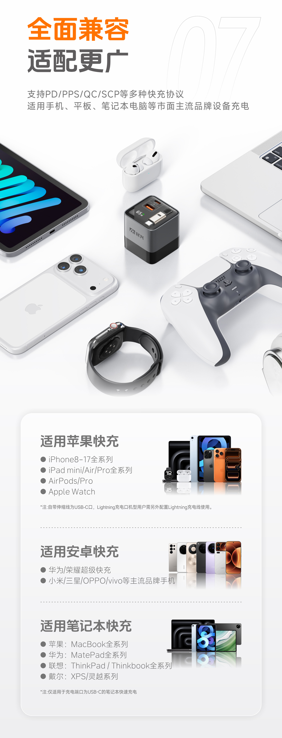 兼容強大,帶上它,就等于帶上了一個全能充電站,徹底告別電量焦慮。