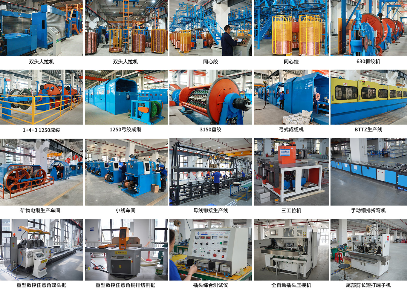 全自動(dòng)剛性礦物絕緣防火電纜生產(chǎn)設(shè)備等尖端生產(chǎn)線近300條/套;年生產(chǎn)能力達(dá)120萬公里,可繞地球30+圈。